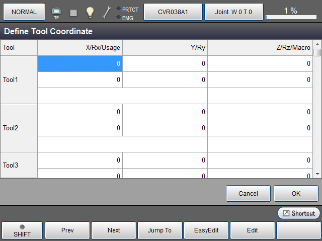 最多可登录63个工具坐标。