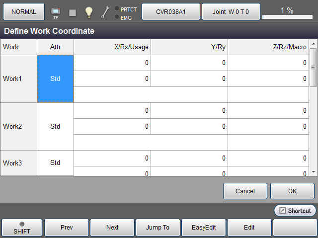 | [F4 简单教导] | 通过将3个点设定为机器人的教导点来设定工件坐标。 |