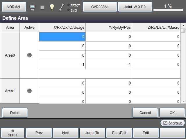 操作路径:[F2 机械臂]-[F6 辅助功能]-[F5 区域]