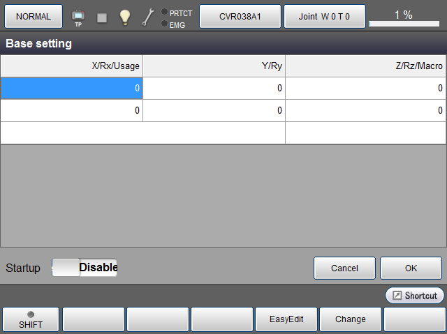 | [F5 编辑] | 选择想变更的坐标要素,按[编辑],显示数字键。 使用数字键输入值,按压数字键上的[OK]变更值。 通过按[基础设定]视窗的[OK],确定变更后的值。 |