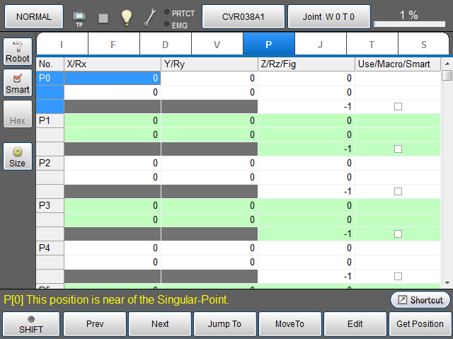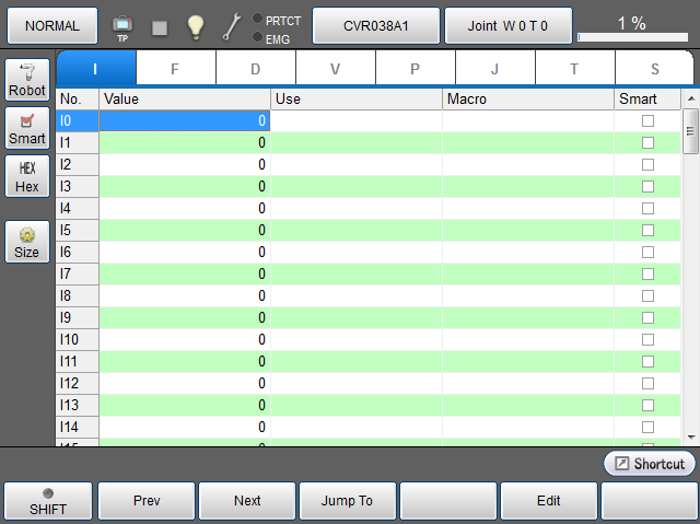 指定变量编号,将机器人手动移动至该指定变量编号中登录的坐标值。 仅为J型、T型、P型变量时,可操作。 |