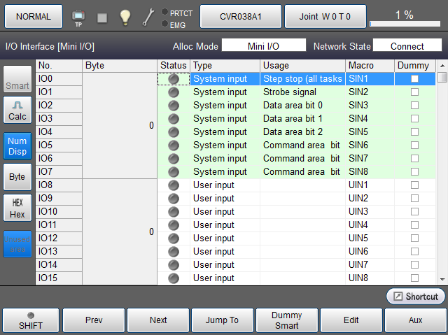 进行I/O的比特计算。 按压按钮时显示蓝色则功能有效,显示I/O监视器上的I/O比特计算结果。 |
