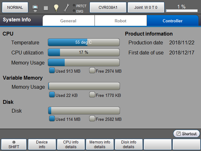 | [F2 CPU信息详情] | 显示COBOTTA的CPU信息。 |