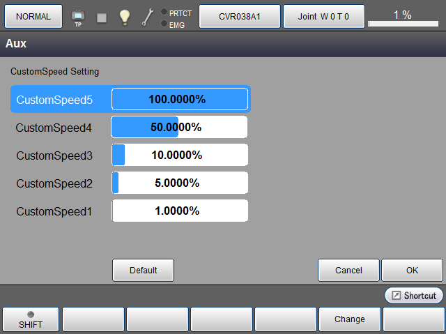 操作路径:远程TP/虚拟TP的[SPEED]键-[F6 辅助功能]