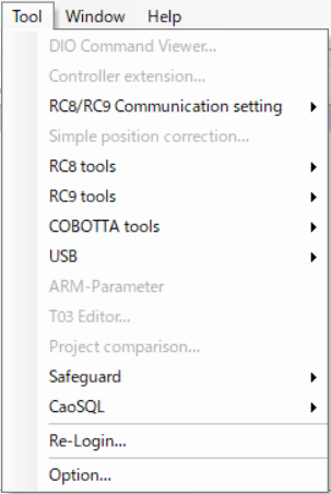 通过WINCAPSIII设定DENSO机器人的选项功能。此功能仅在处于在线(监视)模式中时有效。