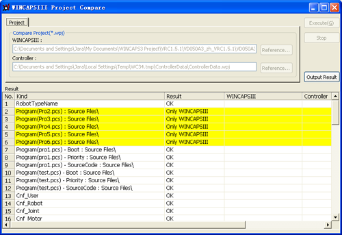 对WINCAPSIII中当前打开的项目和COBOTTA的数据进行对比,并在其它视窗中列表显示对比结果。