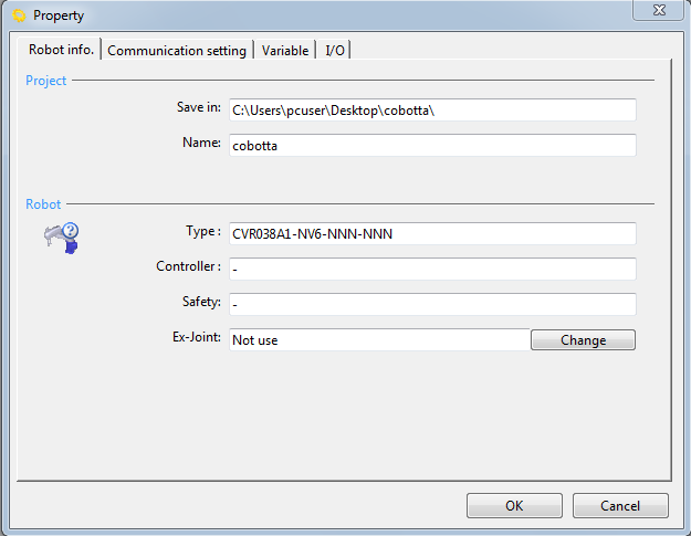设定与COBOTTA间的通信方法或通信选项。