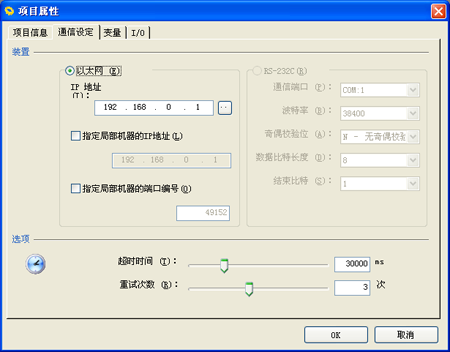 可确认、更改I/O配置或变量的使用个数等设定。