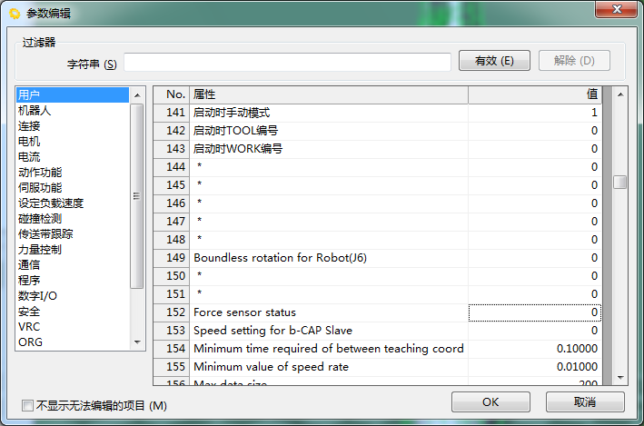 - 将过滤器设为有效后,仅显示包含指定字符串的参数。