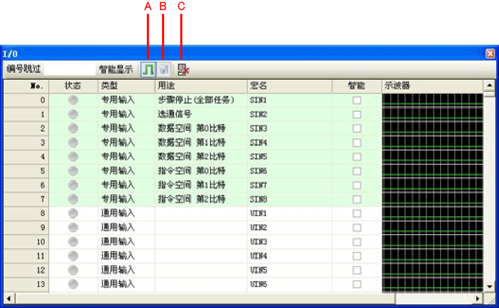 “智能”栏仅显示标记的I/O。