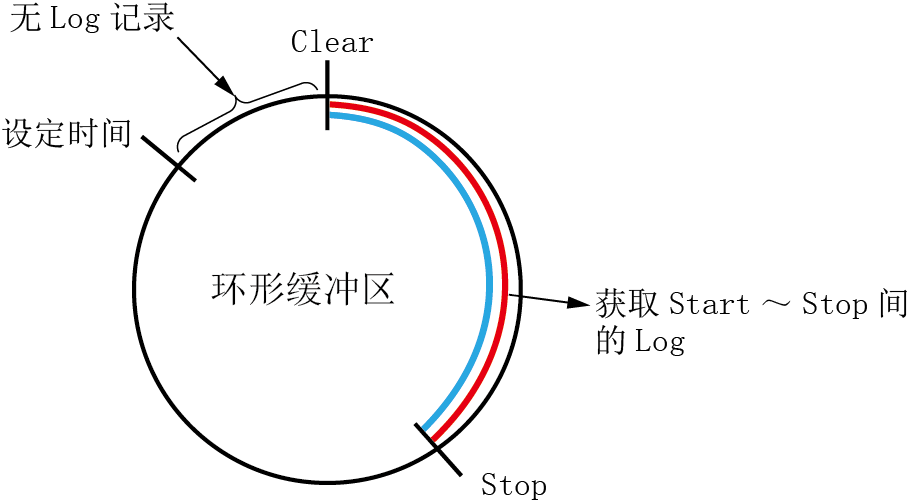 虽然通过清空Log开始记录,但用户可从环形缓冲区中获取的Log数据为以下几处。