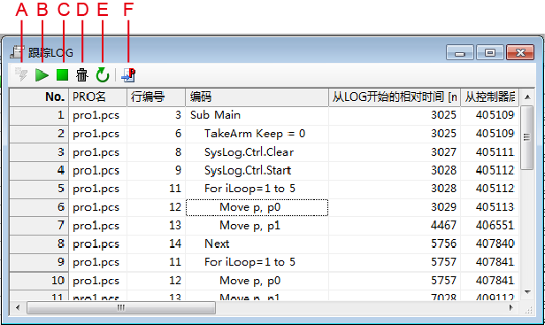 B:“跟踪Log开始”按钮