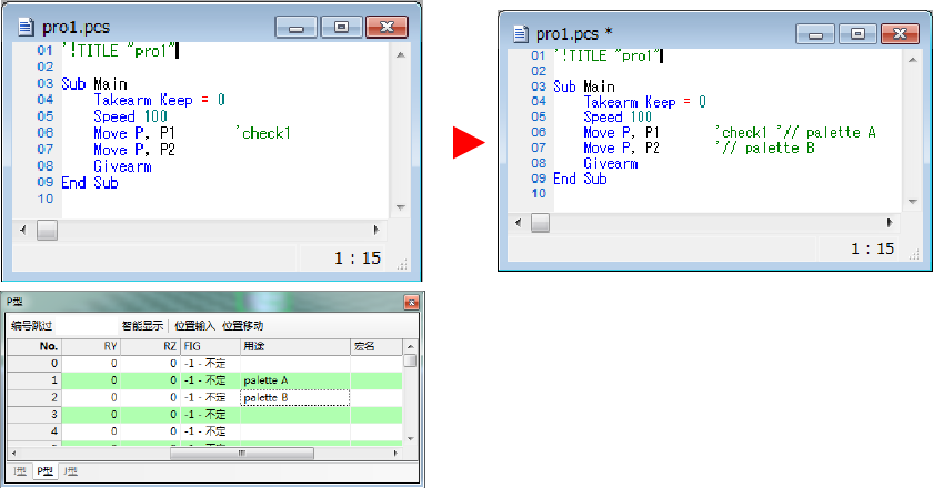 变更I/O和变量的用途说明时,如果再次附加备注,则更新“'//”之后的内容。