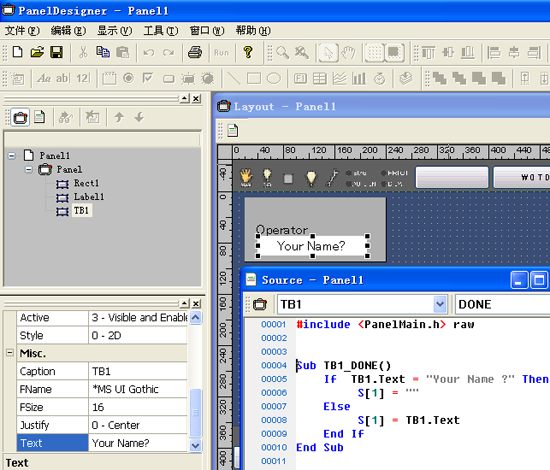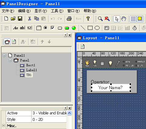 打开操作盘文件,在画面中配置文本框。