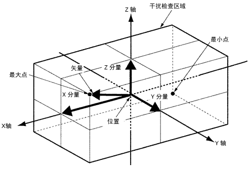 是对设定干扰检查区域的工件坐标的编号与最大点、最小点的2个点进行教导,设定干扰检查区域的方法。此处的最大点与最小点即设定编号的工件坐标上的最大点与最小点。