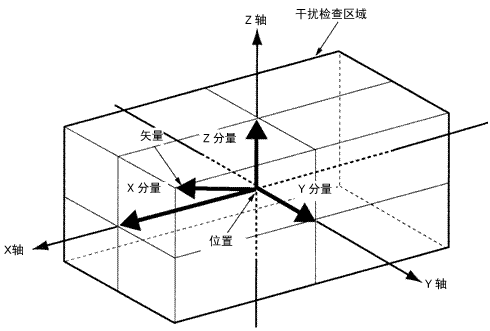 直接输入相对于基准坐标系的区域原点位置(X,Y,Z)与围绕基准坐标X轴、Y轴、Z轴的旋转角(Rx,Ry,Rz)以及决定区域范围的矢量。