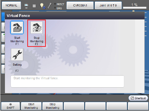 使用“VirtualFence”指令开始/结束监视。详细内容请参照“VirtualFence”。