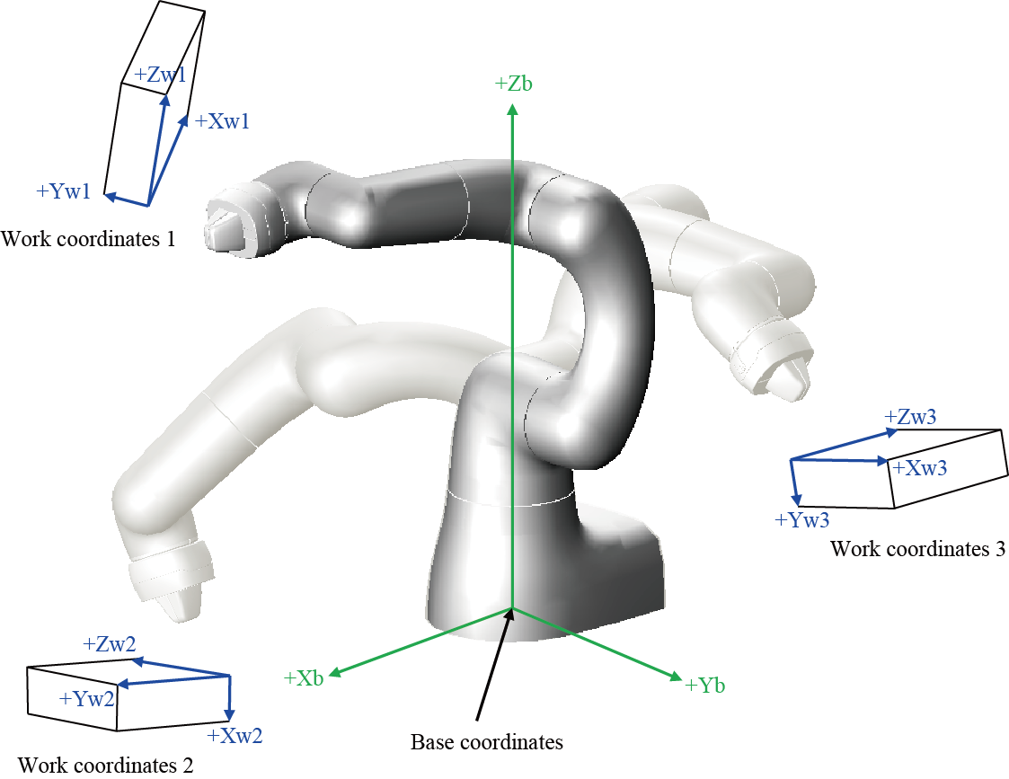 基础坐标系是指以机器人的基准中心为原点的三维直角坐标。基础坐标系的X轴表示为Xb、Y轴为Yb、Z轴为Zb。
