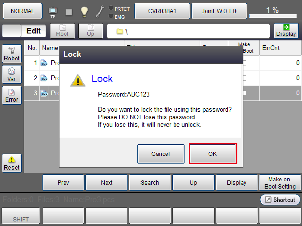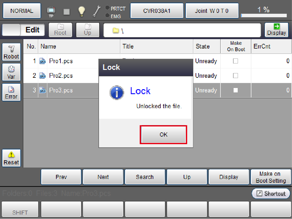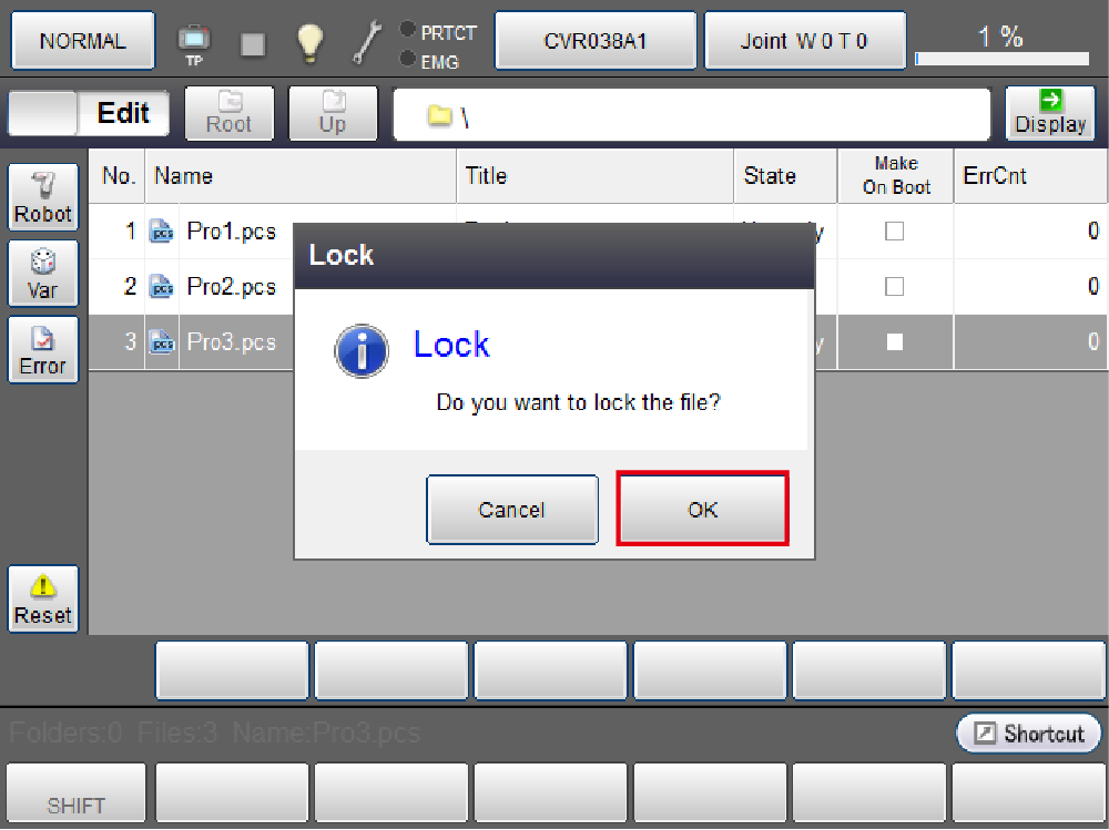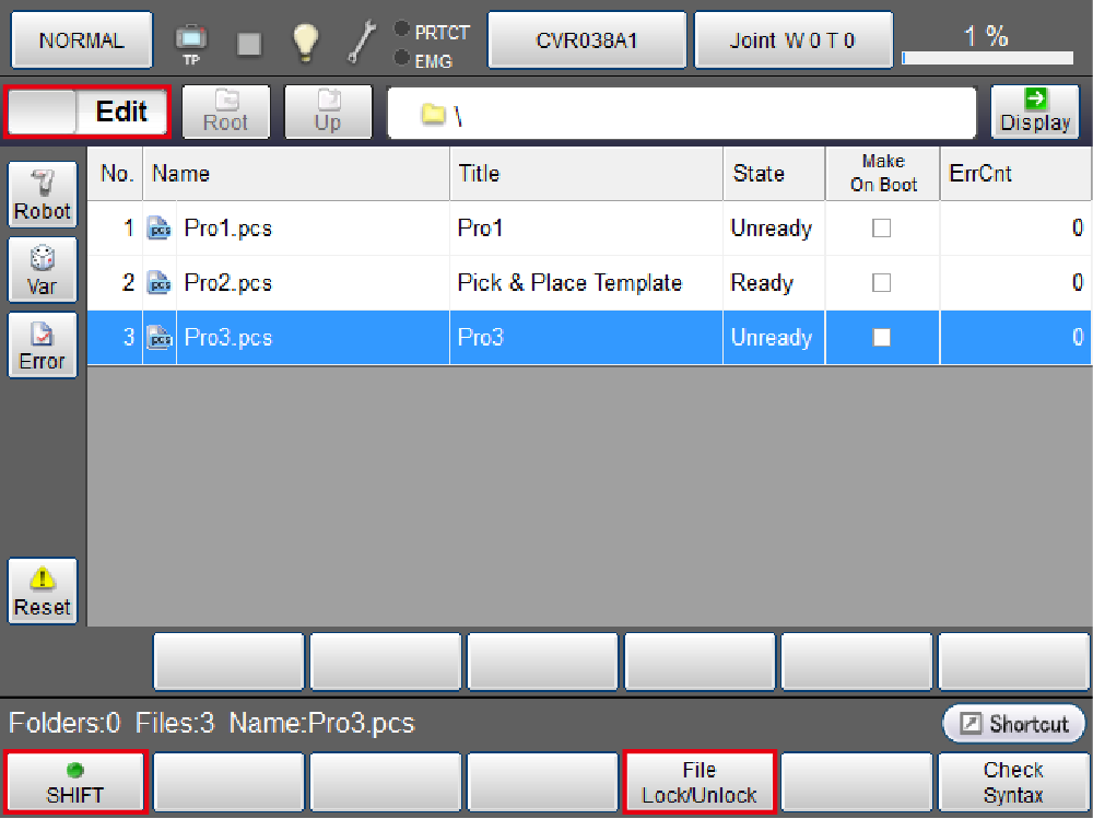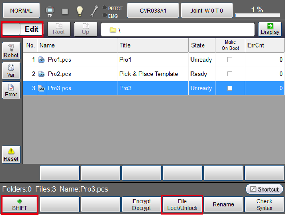 选择进行禁止编辑设定的程序。当画面左上角的模式开关变为“启动”时,将其按下,使之显示为“编辑”。