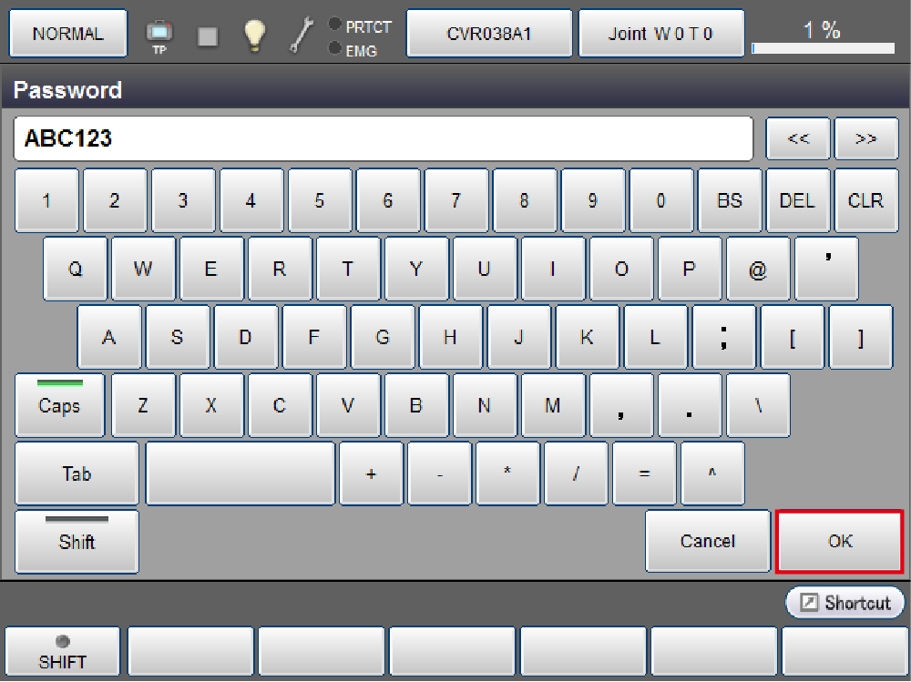 在显示字符串输入视窗时,输入密码后按[OK]。