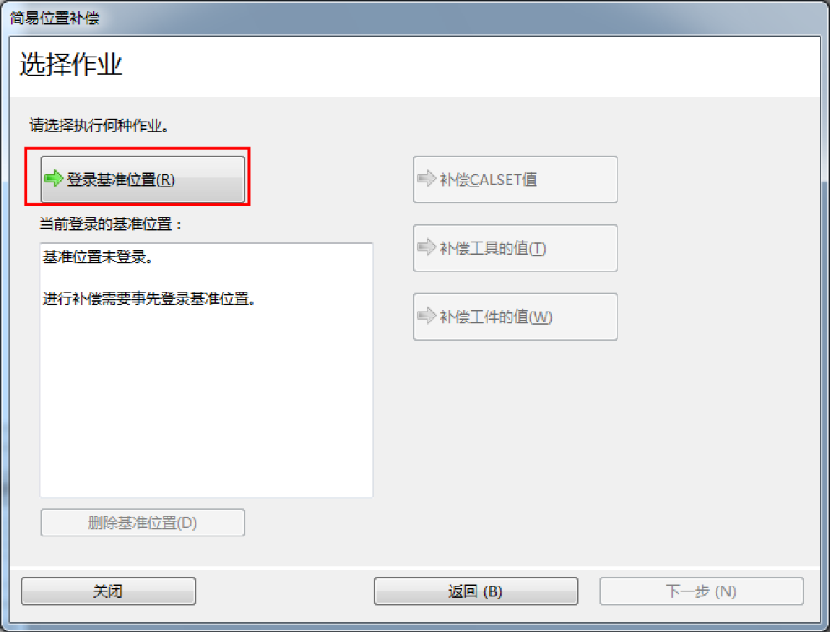 显示[简易位置补偿]对话框后,选择[登录基准位置]。