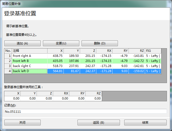 将机器人示教到创建的基准位置后按[追加],机器人的当前位置被登录到基准位置数据。