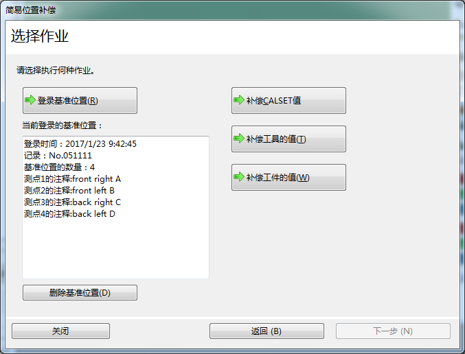 选择登录的基准位置数据后按[删除],选择的基准位置数据被删除。