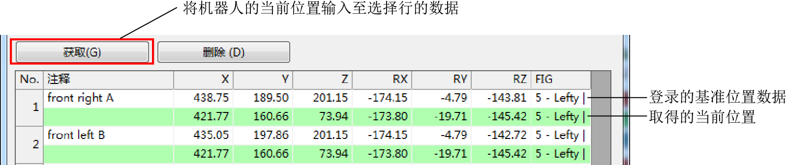 取得时请正确示教位置(X,Y,Z)。与姿势(Rx,Ry,Rz)无关。