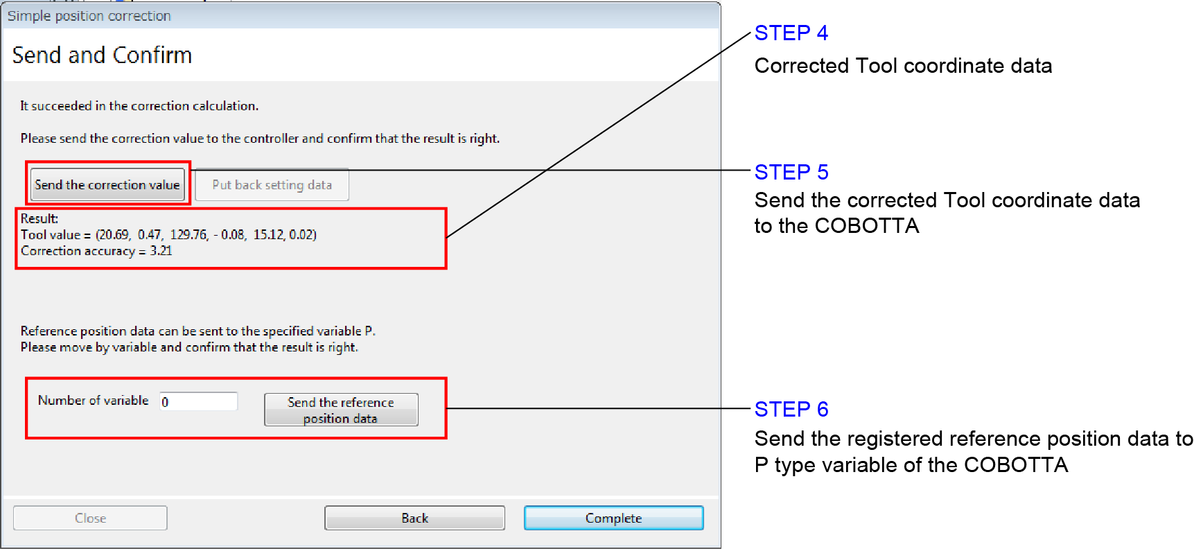 将进行了补偿计算的工具坐标数据发给COBOTTA。