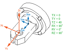 下图所示卡盘形状对应工具坐标的设定和工具定义的实例。