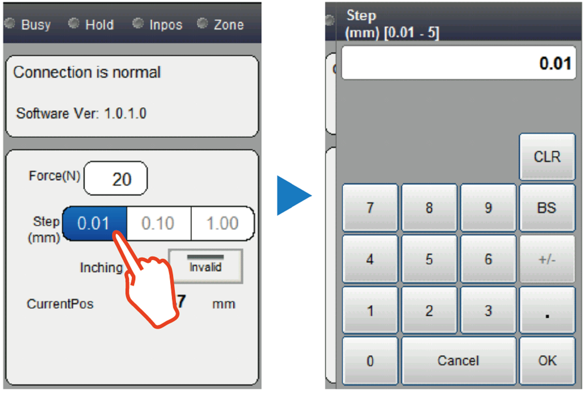| 夹持力(N) | 设定手动动作状态的夹持力。单位为[N]。 |