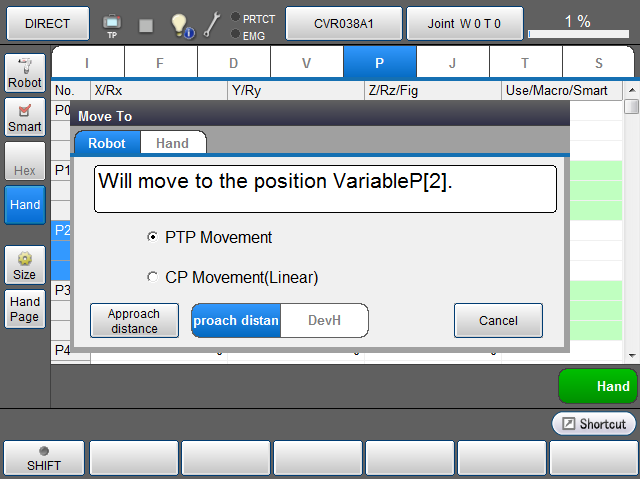 关于直接模式操作的详细内容请参照TP应用程序操作指南的“直接教导”。