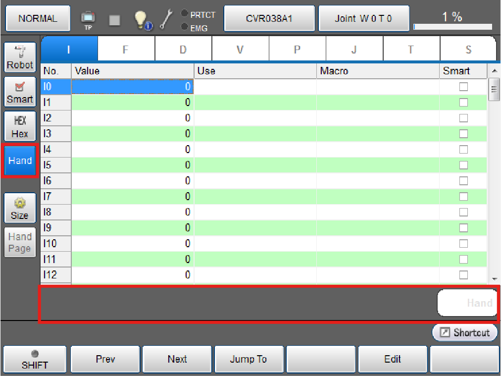 实现与夹治具联动的[Hand]按钮将显示在画面下方。