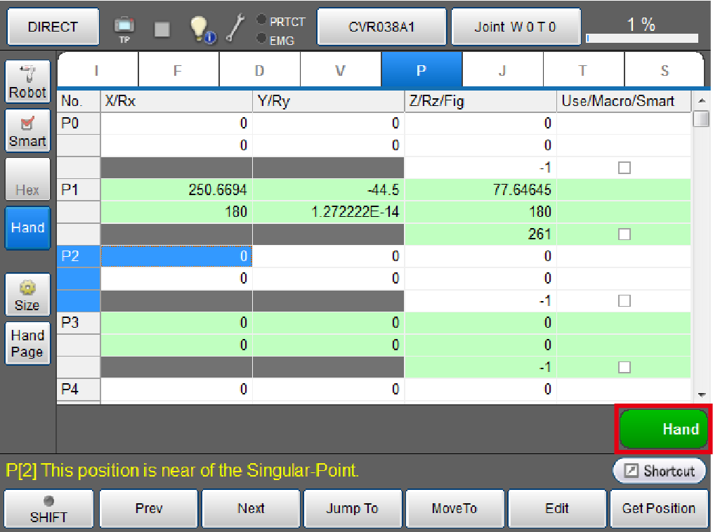 通过该位置、姿势设定夹治具测点时,需按下[Hand]按钮。