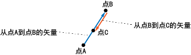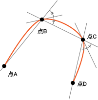 - 如果按照路径点No.从小到大的顺序将3个连续路径点设为A、B、C,则“点A至点B的矢量和点B至点C的矢量所成的角为180度”时,可能会无法计算轨道,发生错误。