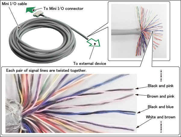 这样,我们就能通过该信号线本身的颜色以及同卷为一组信号线的颜色来判断,该信号线能连接到Mini I/O中具体哪个端子上了。