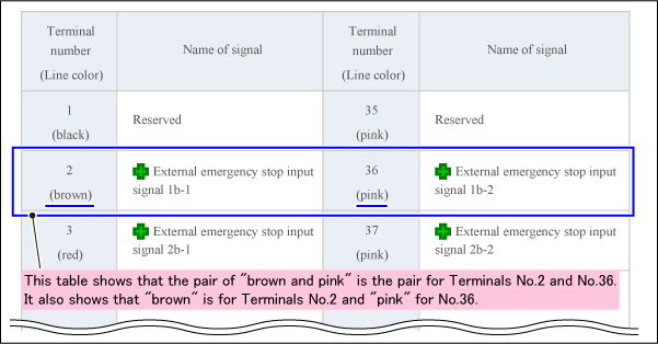 例如,从上表中可以看到1号端子与35号端子分别被信号线所连接,两信号线相卷成一体,而2号端子与36番端子也分别被其他信号线所连接,两信号线相卷成一体。