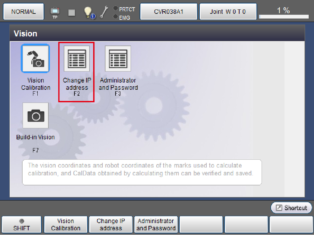 在远程TP/虚拟TP的“视觉画面”按压[F2 IP地址设定]。
