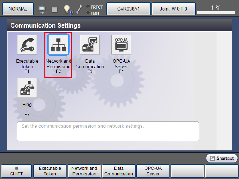 操作路径:基本画面 - [F6 设定] - [F5 通信与启动权] - [F2 网络与通信权]