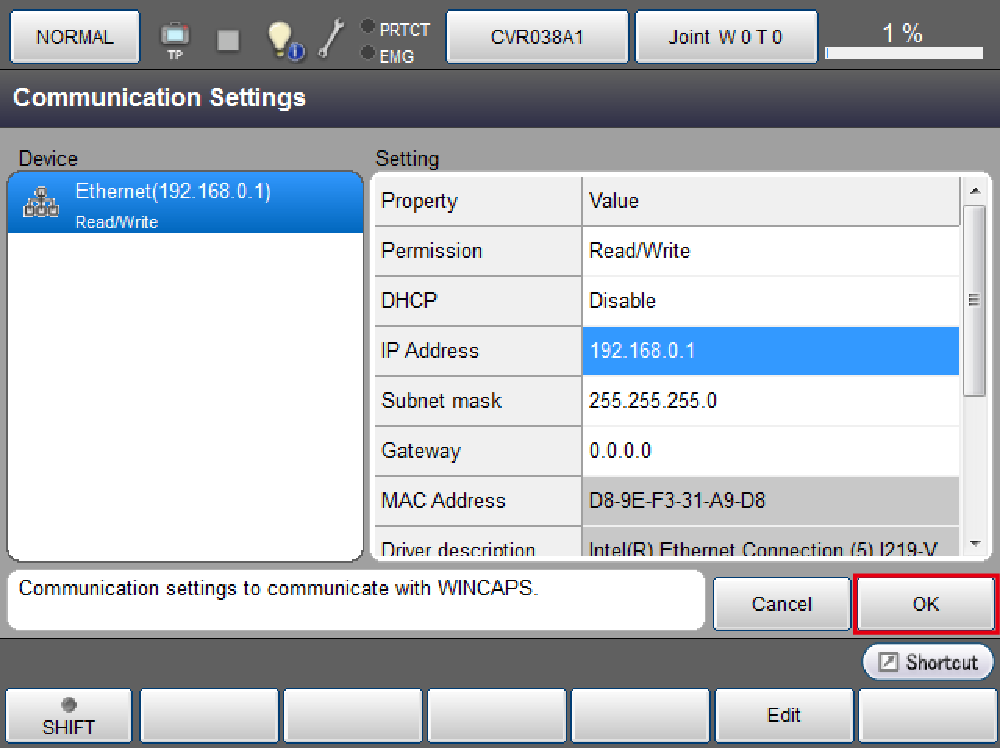 以上COBOTTA与AF照相机(N10-W02)的IP地址设定完成。