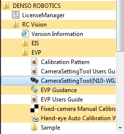 在”所有程序“一览中选择[DENSO ROBOTICS] – [RC Vision] – [EVP] - [相机设定工具(N10-W02)]。