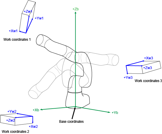可用于机器人和其它设备的干扰检查。下图所示的基准坐标系和工件坐标系为区域设定的基准。