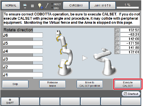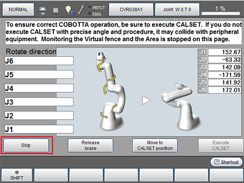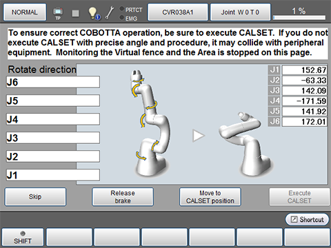 启动COBOTTA时,下图所示CALSET实施窗口会在TP应用上显示。