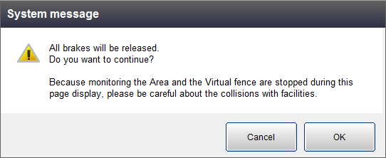 将显示制动器解除系统讯息,则按压[OK]。