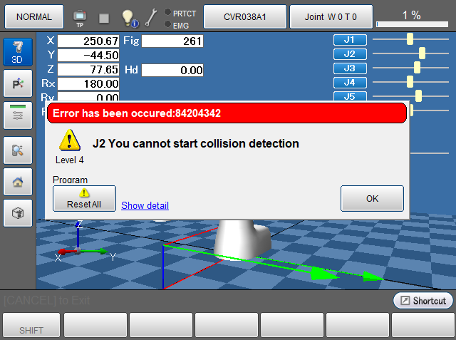 - 在以下状态下将监视设为有效时,可能发生[0x8420434* : *轴:无法启动碰撞检测功能。]的错误。