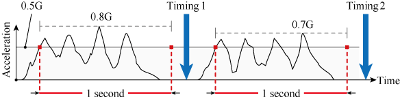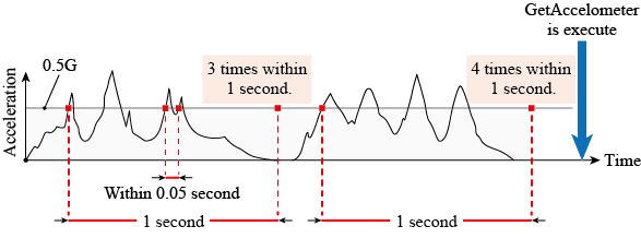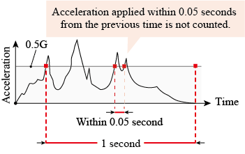 但是,施加阈值以上的加速度后再次在0.05秒以内施加阈值以上的加速度,则不计数。