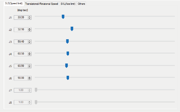 | J1~J8 | 各轴速度限制的限制值。可在SLS速度限制标签进行编辑。 |