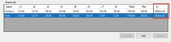 在COBOTTA的软件版本为Ver2.7.*前中,在COBOTTA参数工具的Scene列表中不显示安全参数ID。