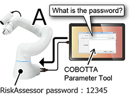 关于通过COBOTTA参数工具变更的参数,因为是与安全有关的重要参数,所以通过专用密码管理。该密码称为“风险评估员密码”。