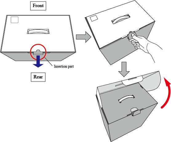 拉出箱子上方的插入部位,拉起上盖。